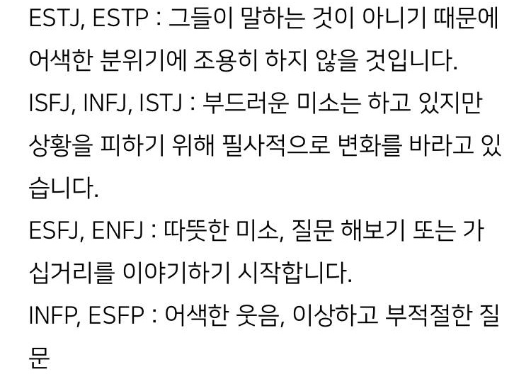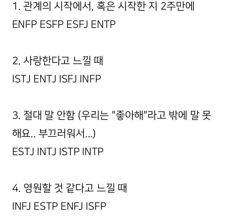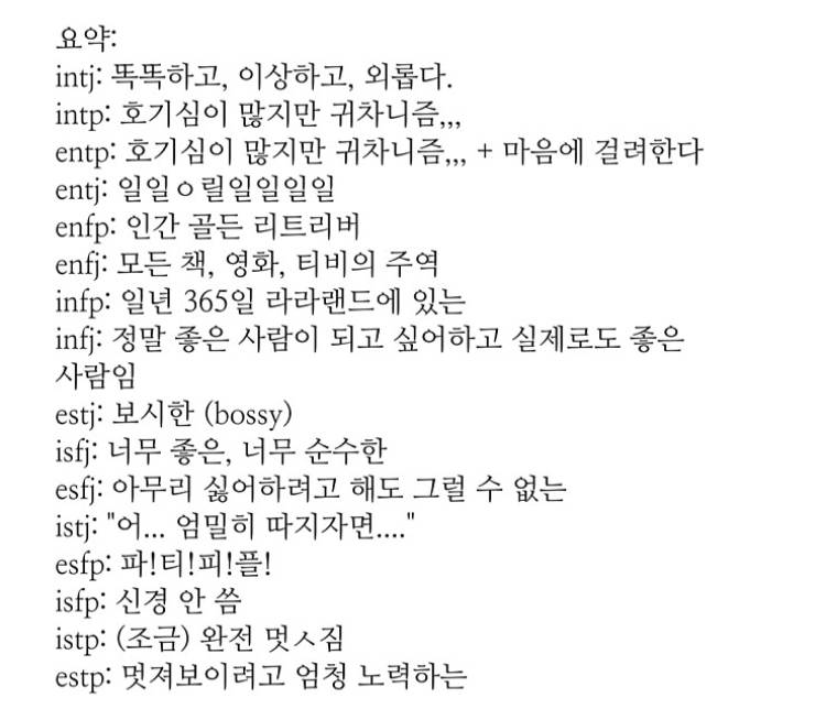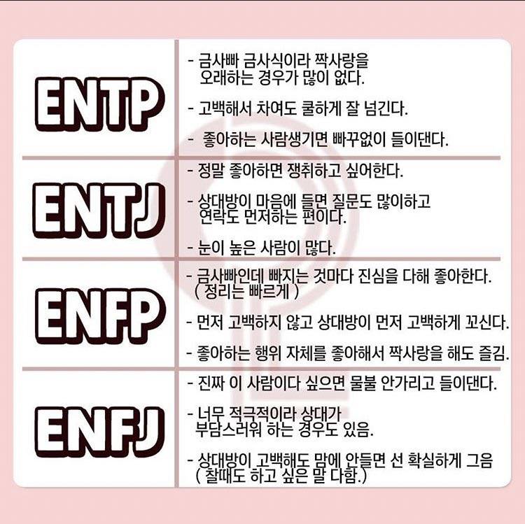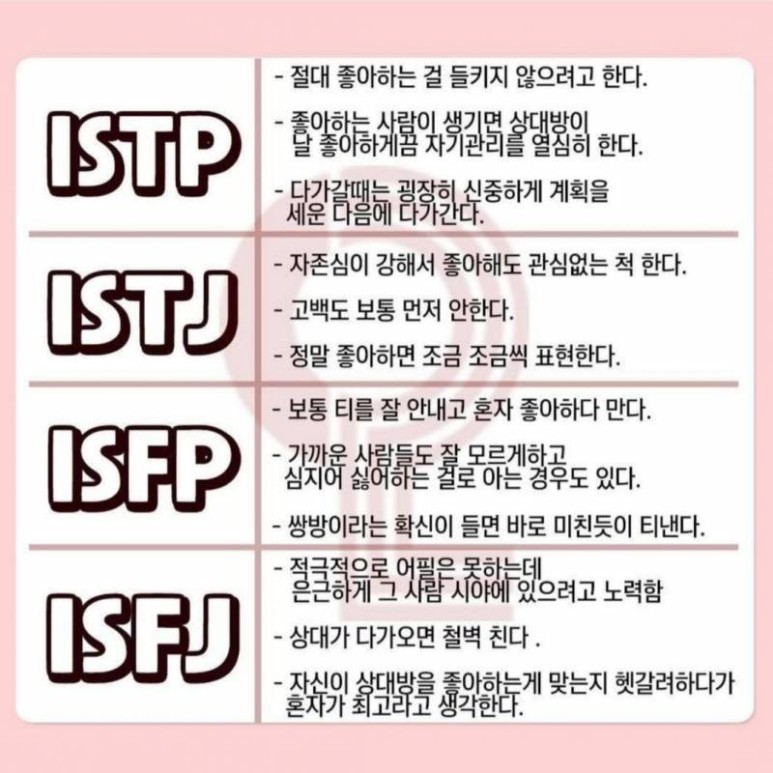 | MBTI 유형별 상황별 특징 2편 (0) | 2021.02.12 |