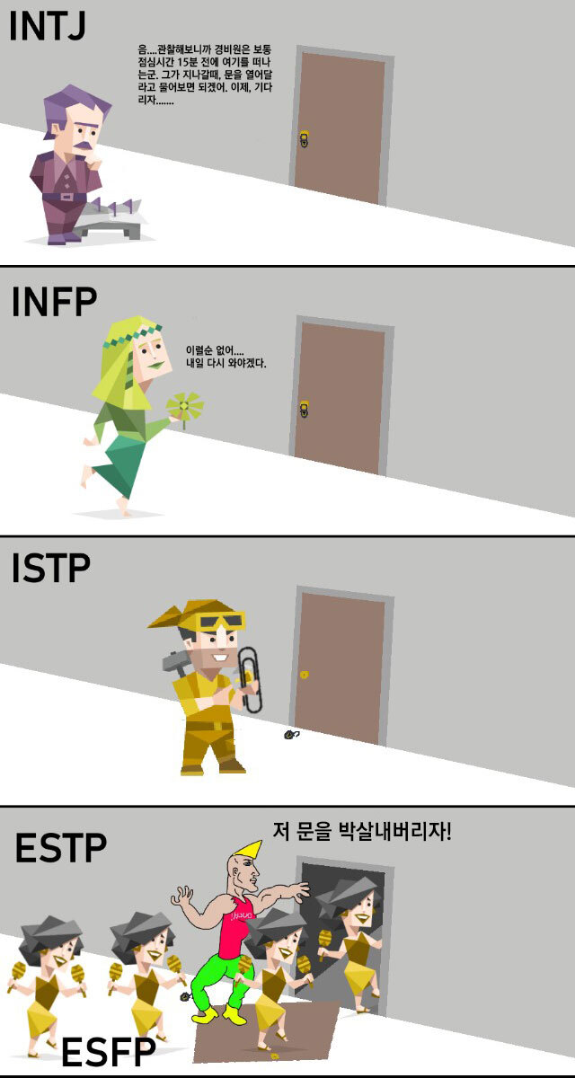 MBTI 유형별 잠겨있는 방에 들어갈 때
