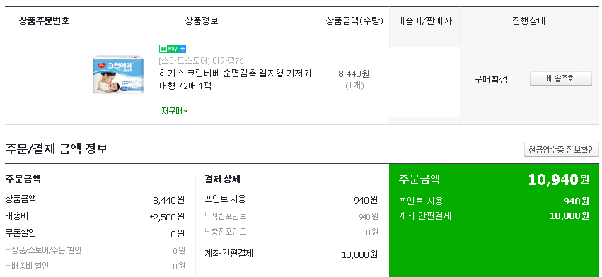 괜히 이상한 의심 받을까봐 원덬이가 얼마전에 대형 72개를 배송비에 갖고 있던 네이버페이 포인트까지 합해서 10000원에 구입한거 인증