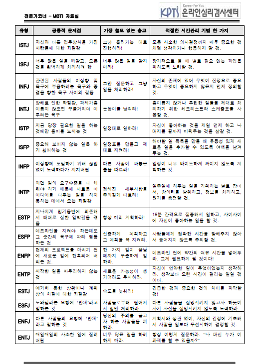 | MBTI-상담자가 알아두면 좋은 선호지표별 의사소통 양식 (0) | 2021.02.13 |