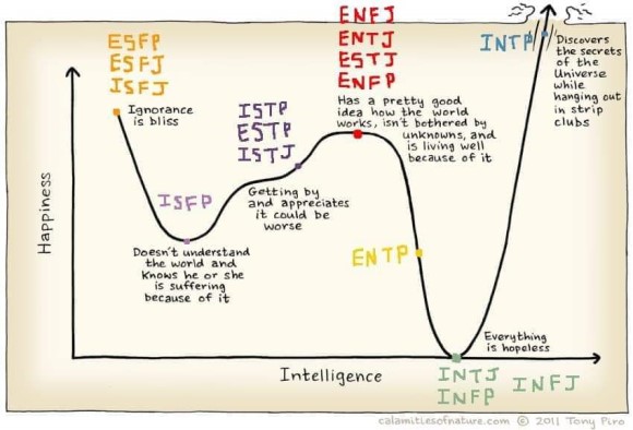ENTP는 아는게 많아 질수록 어정쩡한 행복도를 보이는 것으로 해석된다.