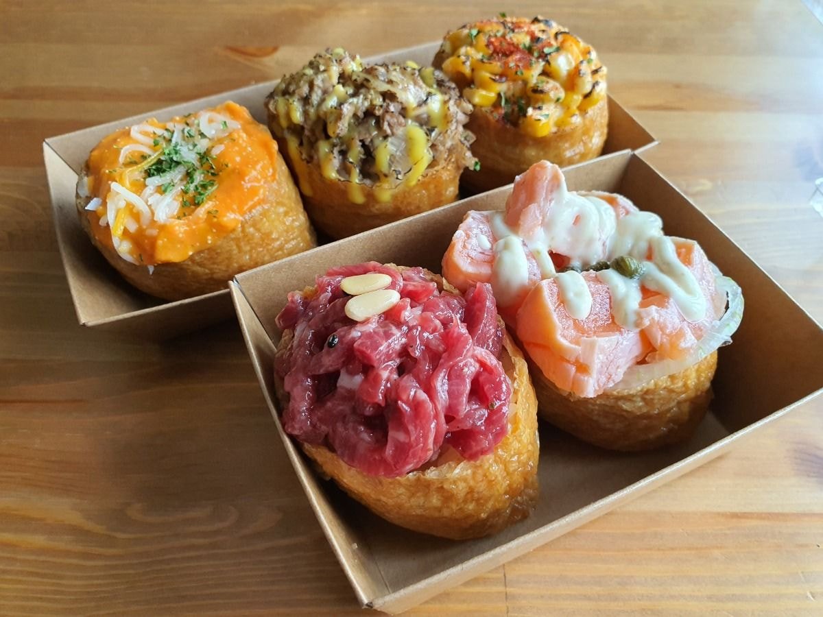 요즘 유부 초밥 위에 토핑 잔뜩 쌓아서 파는 게 유행 인 듯