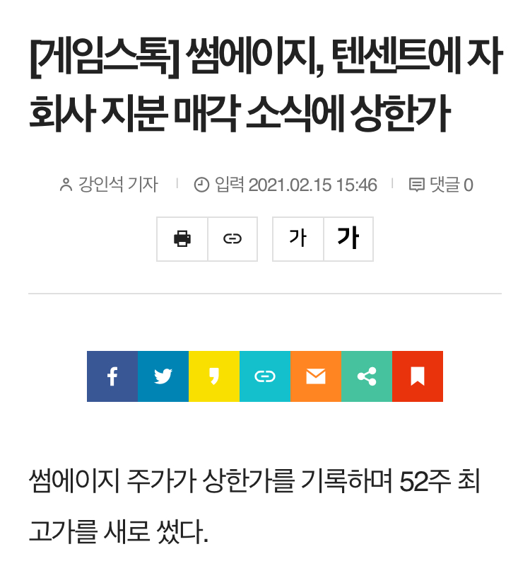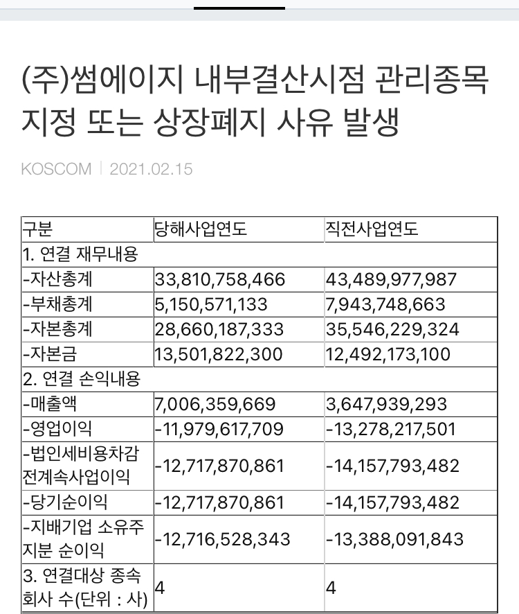 1. 썸에이지라는 회사가 오늘 호재로 상한가 달성