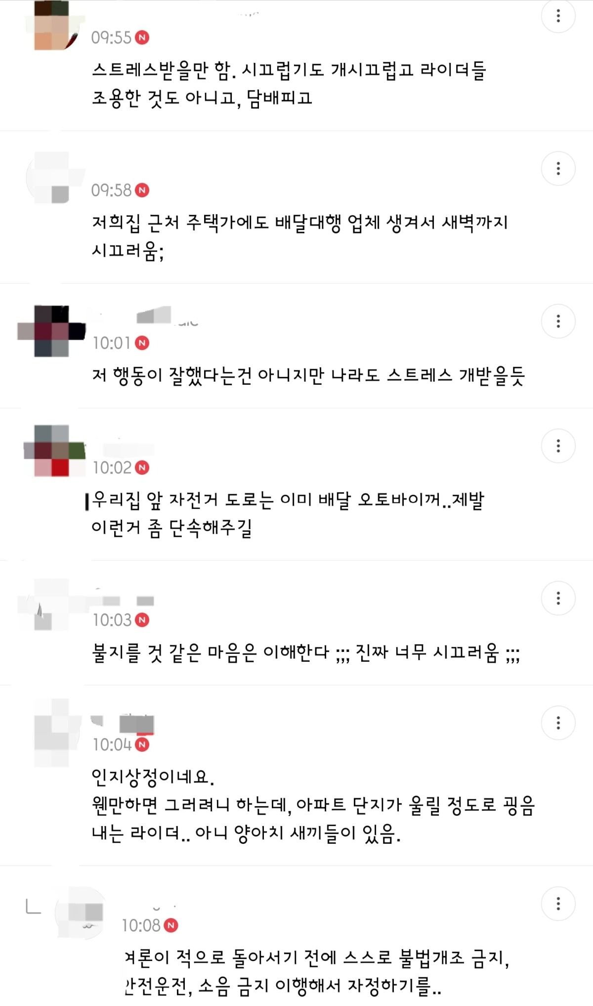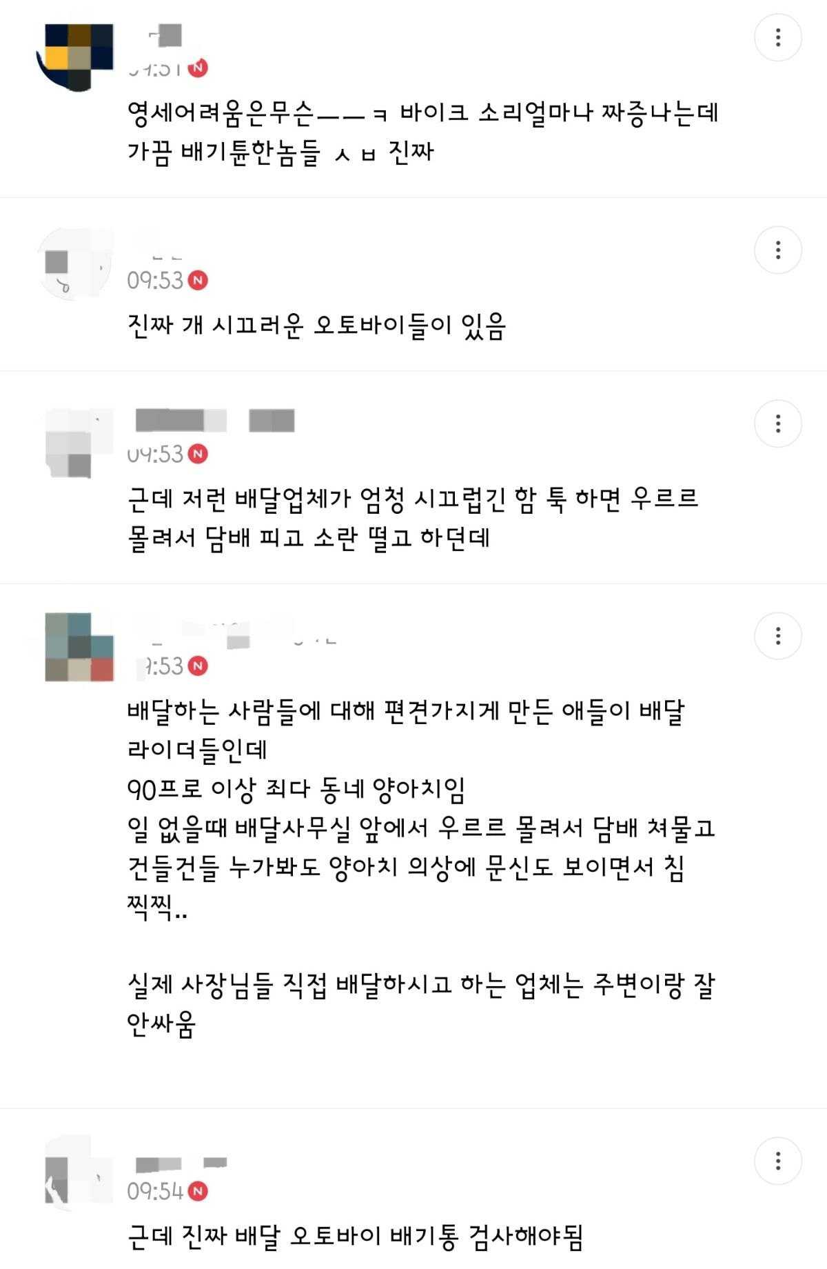 집앞 배달업체 오토바이들 소음에 1년 동안 시달렸다 함