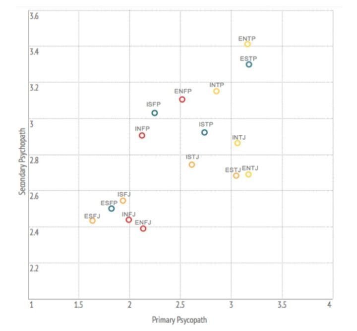 보통 TP유형이 싸이코패스, 소시오패스 성향이 있는 경우가 많고 FJ가 젤 낮다네요
