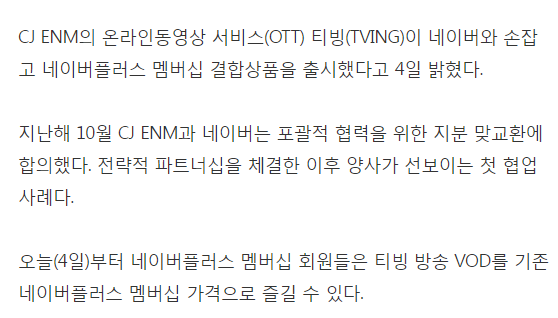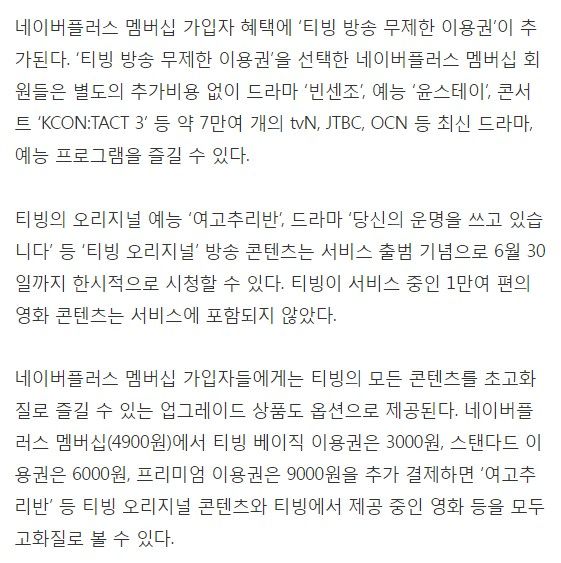 | '월 3천900원' 네이버 멤버십 가입하면 티빙도 본다 (0) | 2021.03.04 |