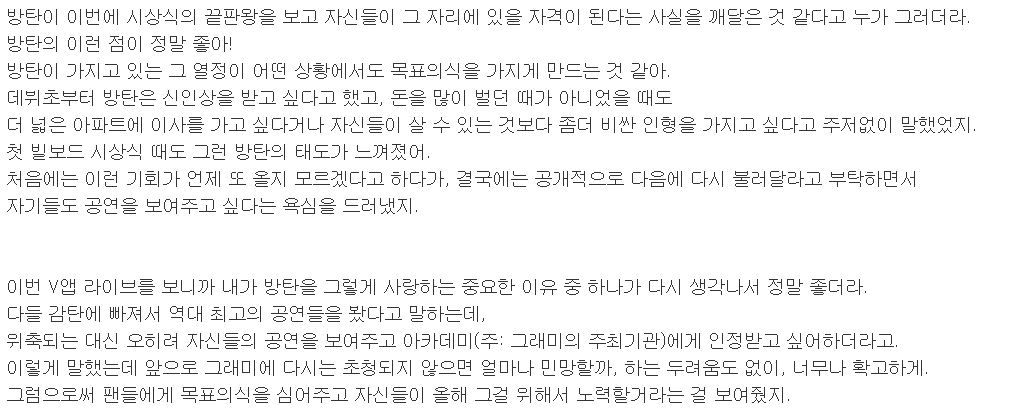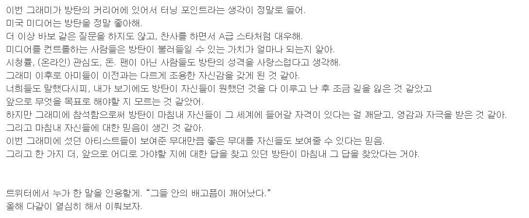 이 라이브가 끝나고 나서 아미들도 다들 그래미 무대를 소취하게 되었는데...