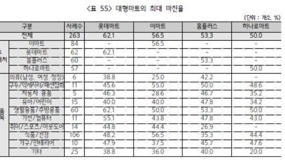 기존 대형 마트들은 최대 62%. 최저 20%. 평균 31.4% 마진율로 장사를 했음. (여기에 트레이더스는 안들어가는듯. 창고형은 대충 20%라고 하니 그 쯤 될려나... )