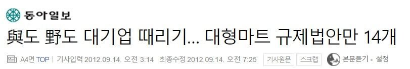 경쟁적으로 대형마트 영업규제 정책을 발표할때