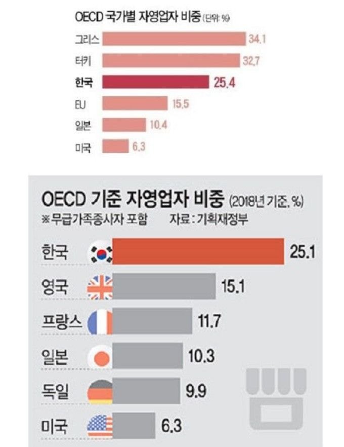 그럴 수밖에 없는게 우리나라 자영업자 비율은