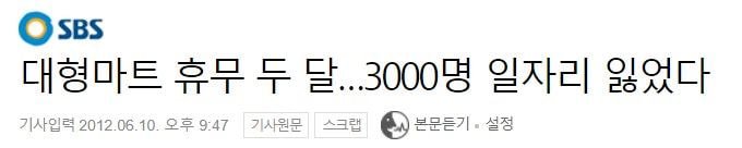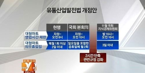 기업활동을 저해하며 일자리 (특히 대형마트) 감소등을