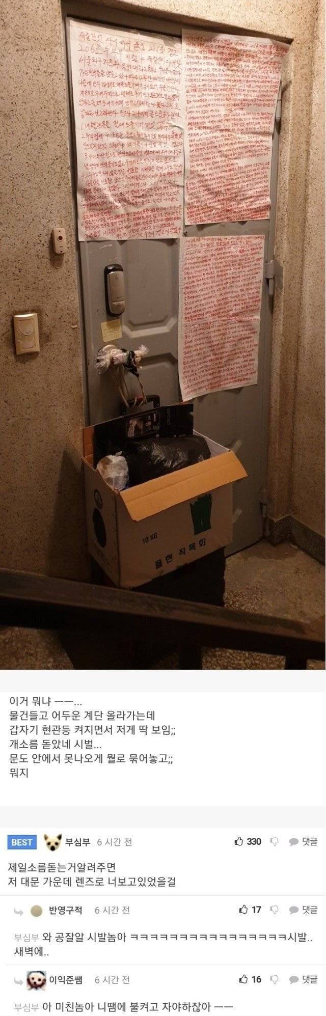 1. 내 현관문을 절대로 두들기지 말 것 (206호 2차 경고)