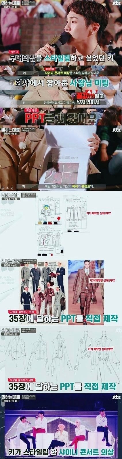 샤이니 키가 강연회에서 말했던 내용들이고 의상 비하인드 스토리라고 생각하고 읽으면 될듯.