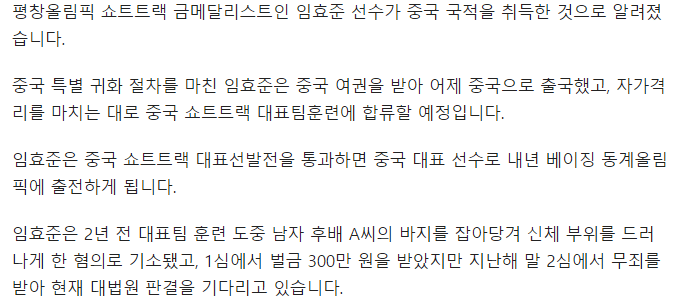 | [단독] 한국이 반대하면 임효준 베이징올림픽 불발 (0) | 2021.03.09 |