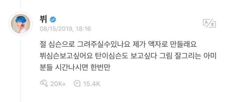 팬이 그려준" 뷔심슨" 진짜 액자로 만들어서 걸어둠