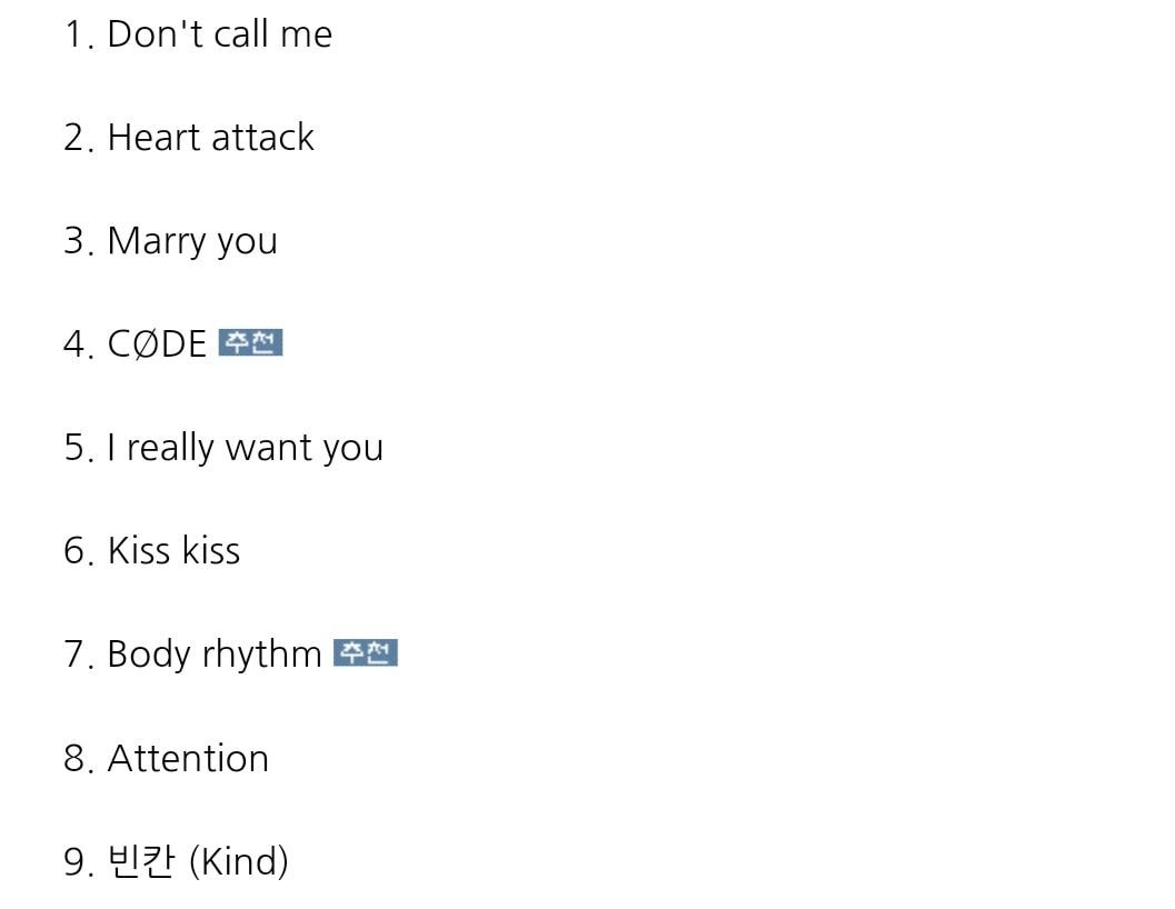 < Odd >의 몽롱한 침잠 효과로 시작을 알리는 'Heart attack', 데뷔곡 '누난 너무 예뻐 (Replay)'의 서사와 감미로운 합창 코러스를 계승하는 'Marry you', 그리고 < 1 of 1 >의 레트로 정서와 댄서블 정신에 입각하며 각각 리드미컬한 기타와 묵직한 베이스의 매력을 살린 'I really want you', 'Kiss kiss'까지. 다양한 수록곡이 그룹의 궤적을 속속 짚어낸다.