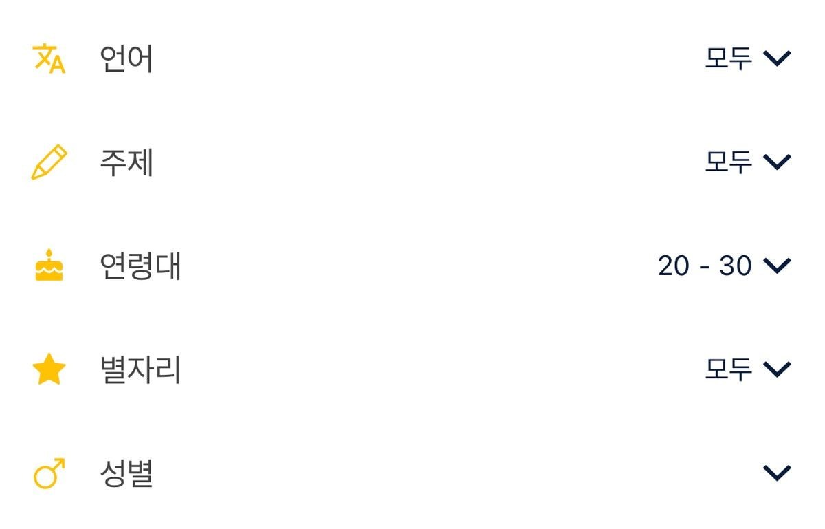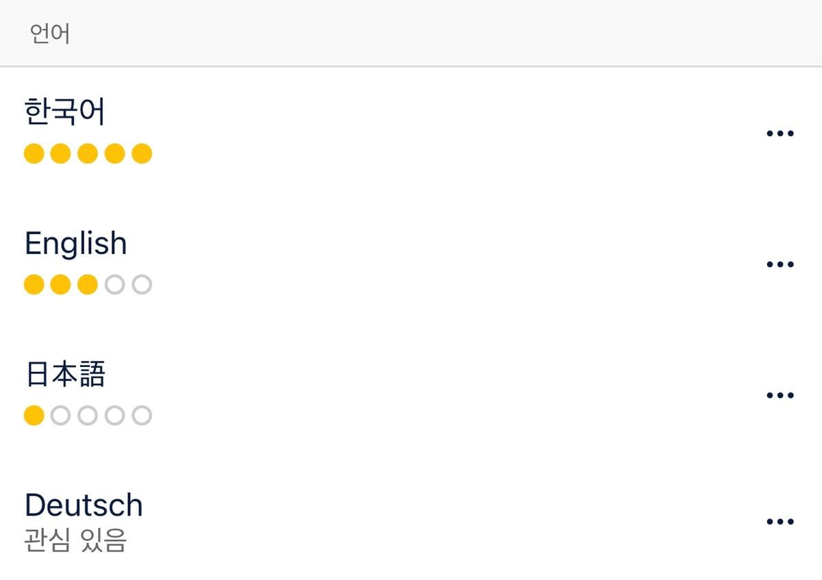 가능한 언어 또는 관심있는 언어 설정 가능
