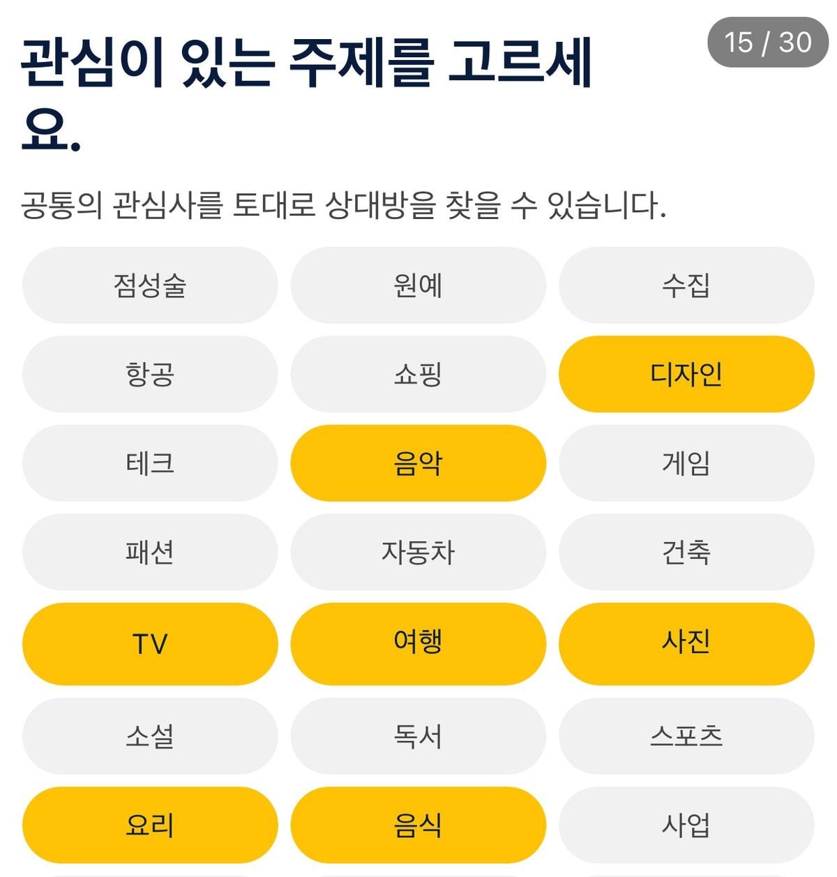 내가 관심있어 하는 주제를 프로필에 설정해 둘 수도 있고