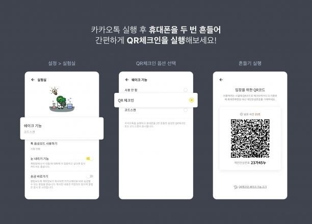 업데이트 후 위 이미지대로 쉐이크 설정 -QR체크인 설정!
