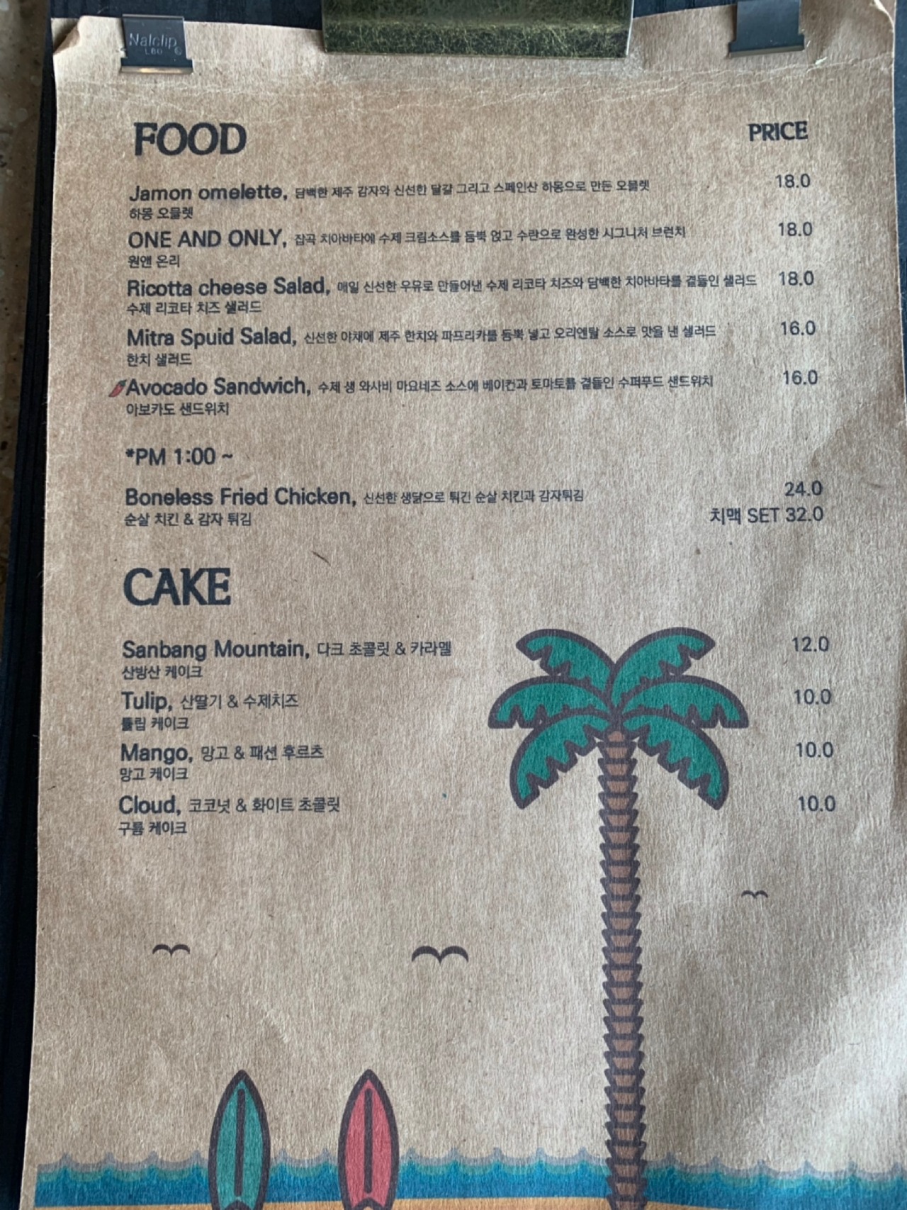 저 뒤에 보이는 산방산 모양을 본뜬 산방산 케이크라고 이 카페 시그니처 메뉴중 하나인듯