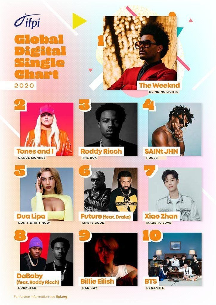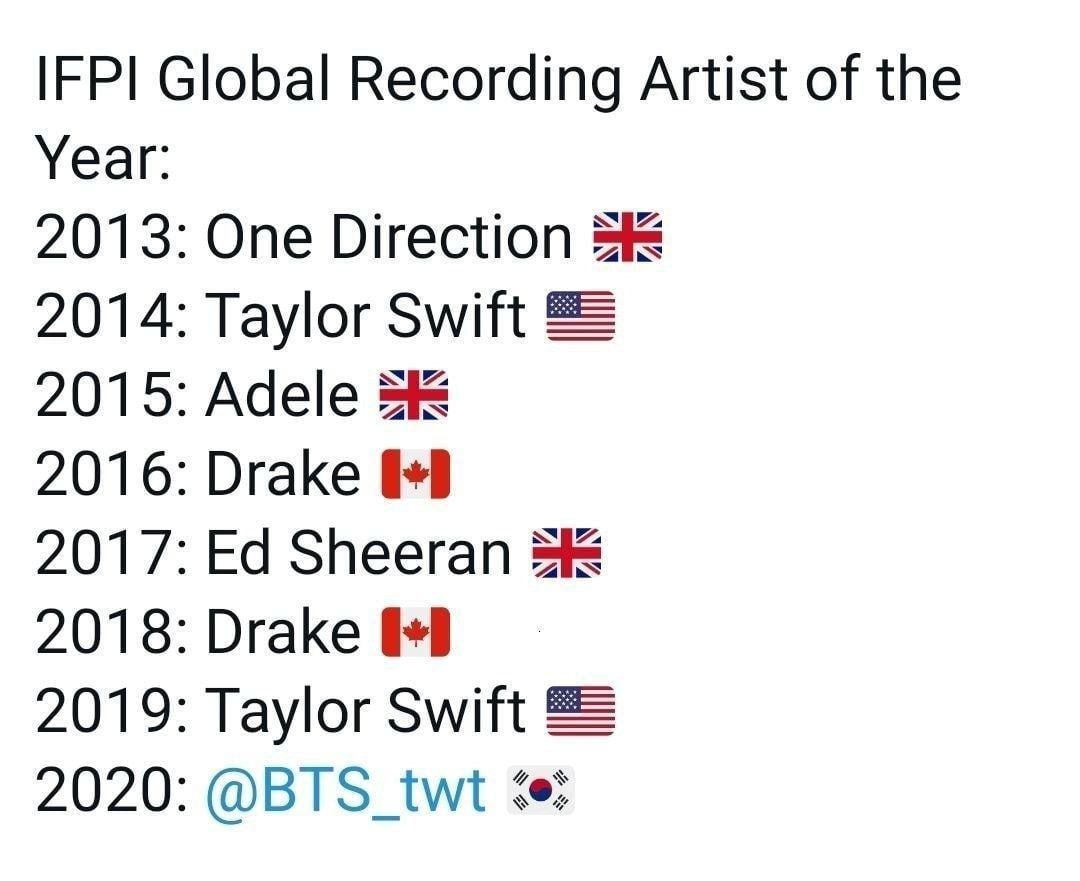 게다가 싱글 음반(다이너마이트)은 2020년 10위인데