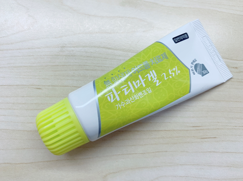 이 연고의 경우 과산화 벤조일 성분이 메인으로 2.5 퍼센트 함유되어 있습니다.