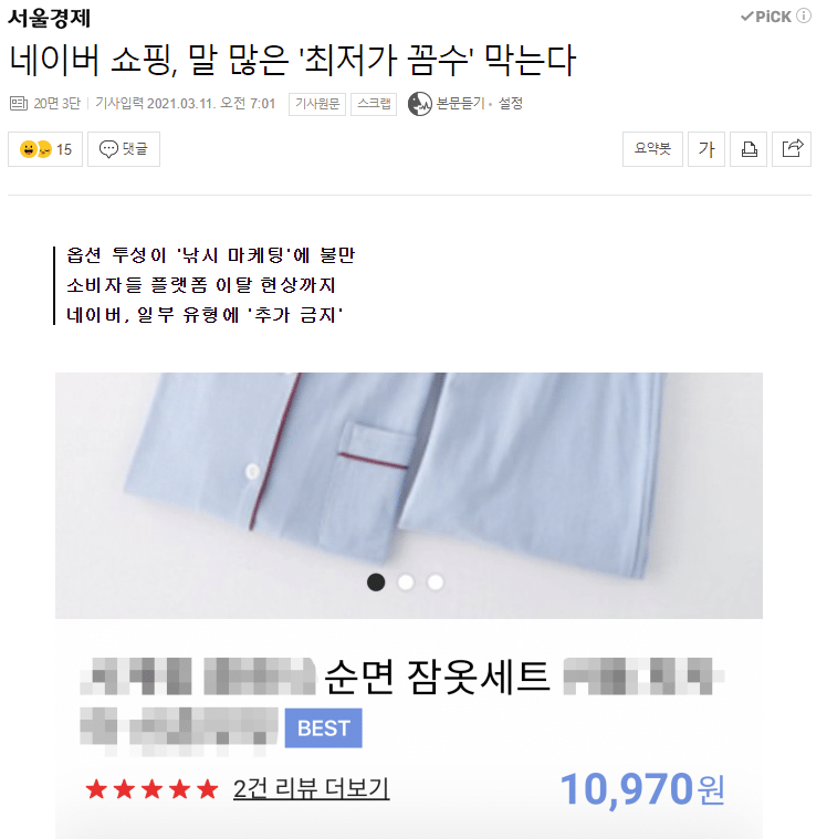 하지만 이 같은 가격 등록 제도는 구매자들이 ‘최저가 검색’의 효용을 실감하기 어렵게 만들었다. 최저가인 줄 알았지만, 더 비싼 금액을 내야 해 고객들의 불만이 계속됐고, 심지어 플랫폼 이탈까지 일어나기도 했다. 이에 네이버 쇼핑을 비롯한 주요 e커머스 업체들이 ‘옵션 추가금’을 금지하는 정책들을 잇달아 내놓고 있어 주목된다.