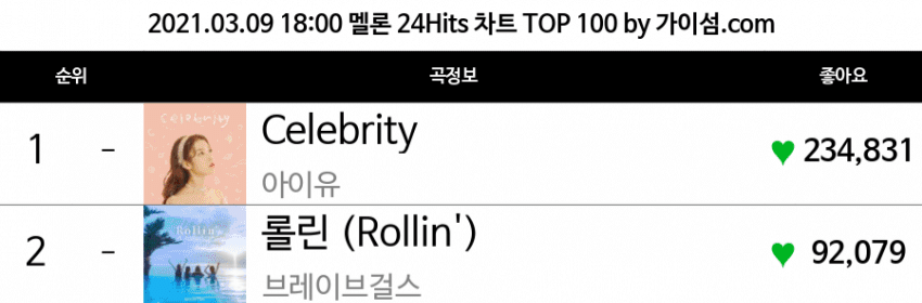 지금 멜론 2위고 멜론빼고 나머지음싸는 1위