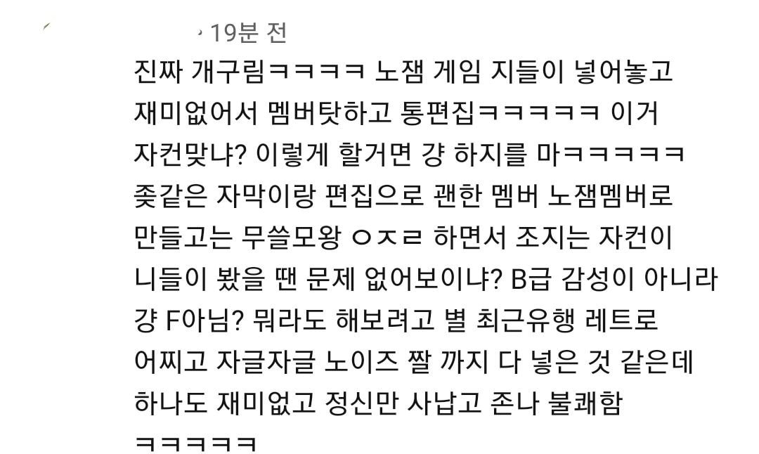 꿀노잼이어도 내돌보려고 재생한 자컨인데 재미없다고 빨리감기하고 통편집시킴