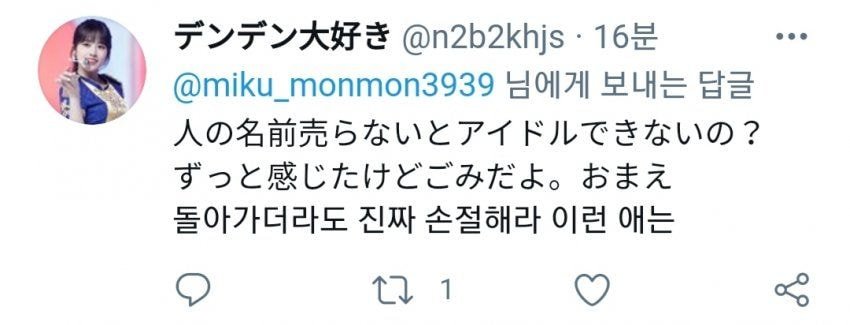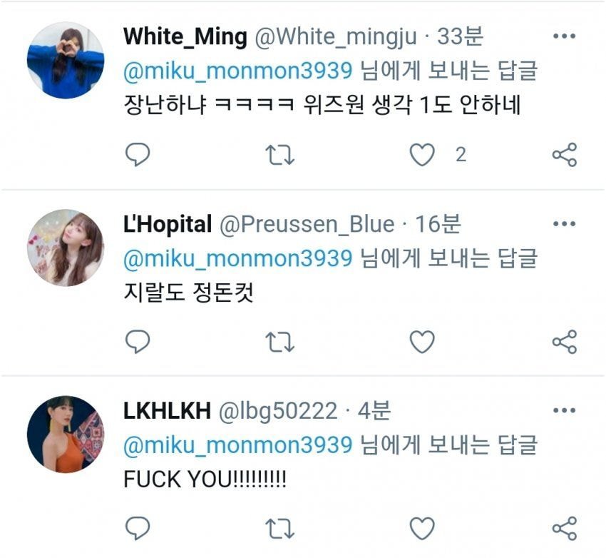 그러자 트위터 답멘으로 아이즈원팬들한테 욕먹기 시작
