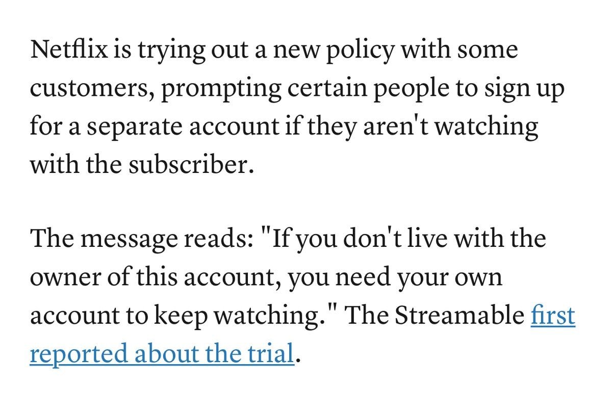 메시지는 다음과 같습니다. "이 계정의 소유자와 함께 살지 않는 경우 계속 시청하려면 자신의 계정이 필요합니다.