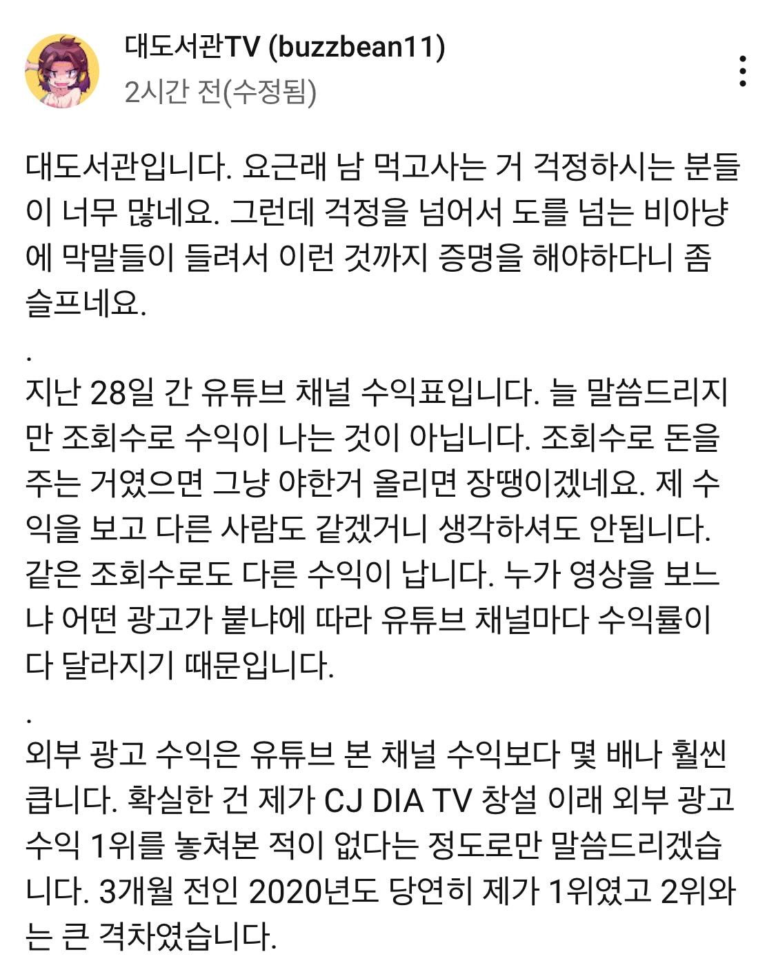 - 대형 유튜버 걱정할 필요 없다(얘기 나온건 걱정이 아니라 비꼬기지만)
