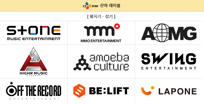 CJ계열사 중 엔터테인먼트/미디어(CJ ENM) 산하의 레이블들
