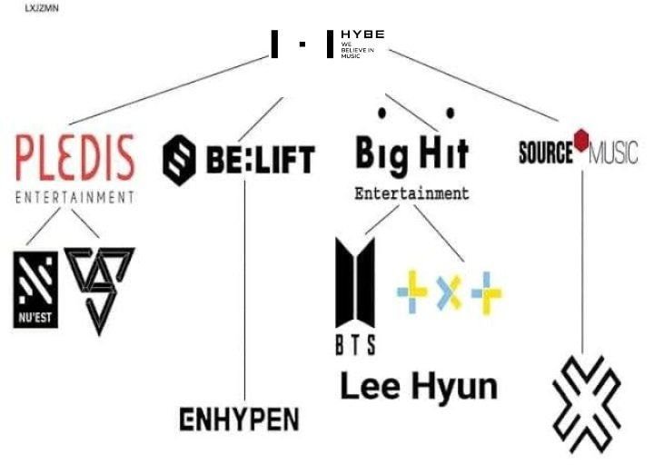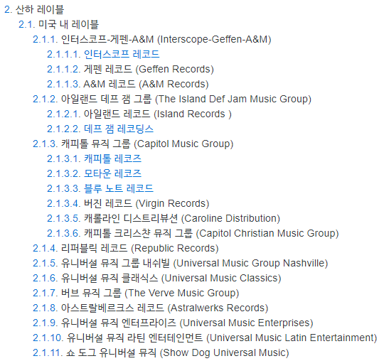 그 밑에 딸려있는 수많은 레이블(엔터사)들