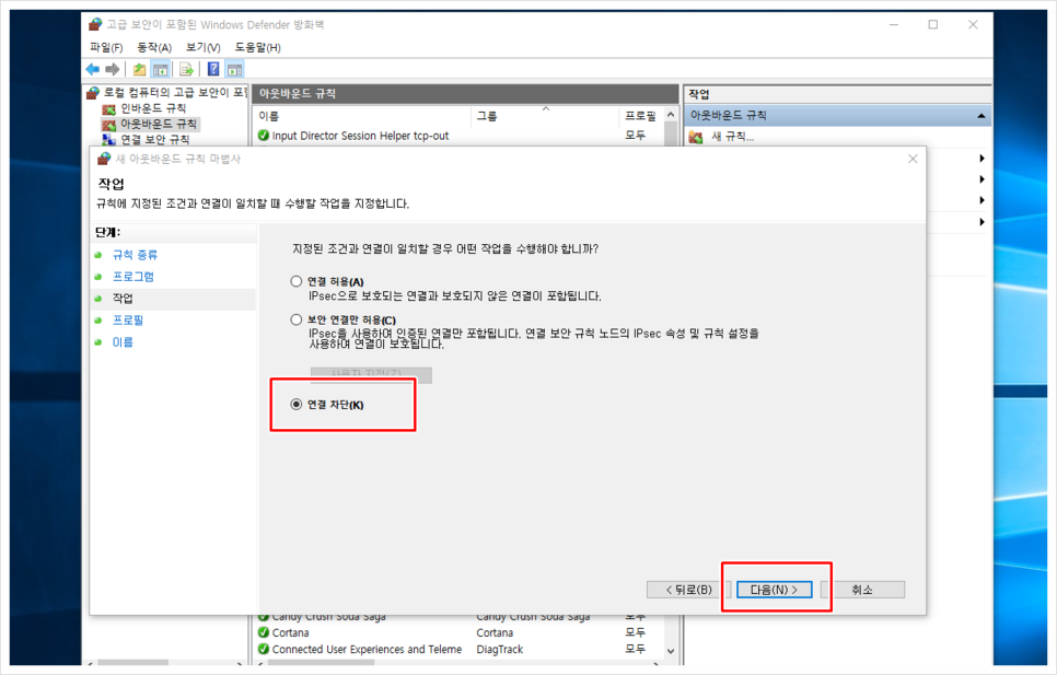 위 이미지와 같이 연결 차단을 선택한 후 빨간 줄 안에 표시된 다음을 누르고 나면 아래와 같은 화면이 나옵니다.