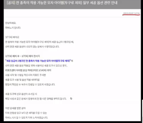 세공에서 특정옵션이 안나온다는걸 유저들이 직접 돈을 들여서 테이블을 뽑아서 증명한 다음에야 부랴부랴 수정했다.