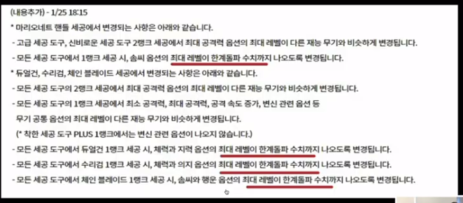 즉 장비별로 세공한계치가 다르고 이 역시 운영진이 밝힌적이 없다.
