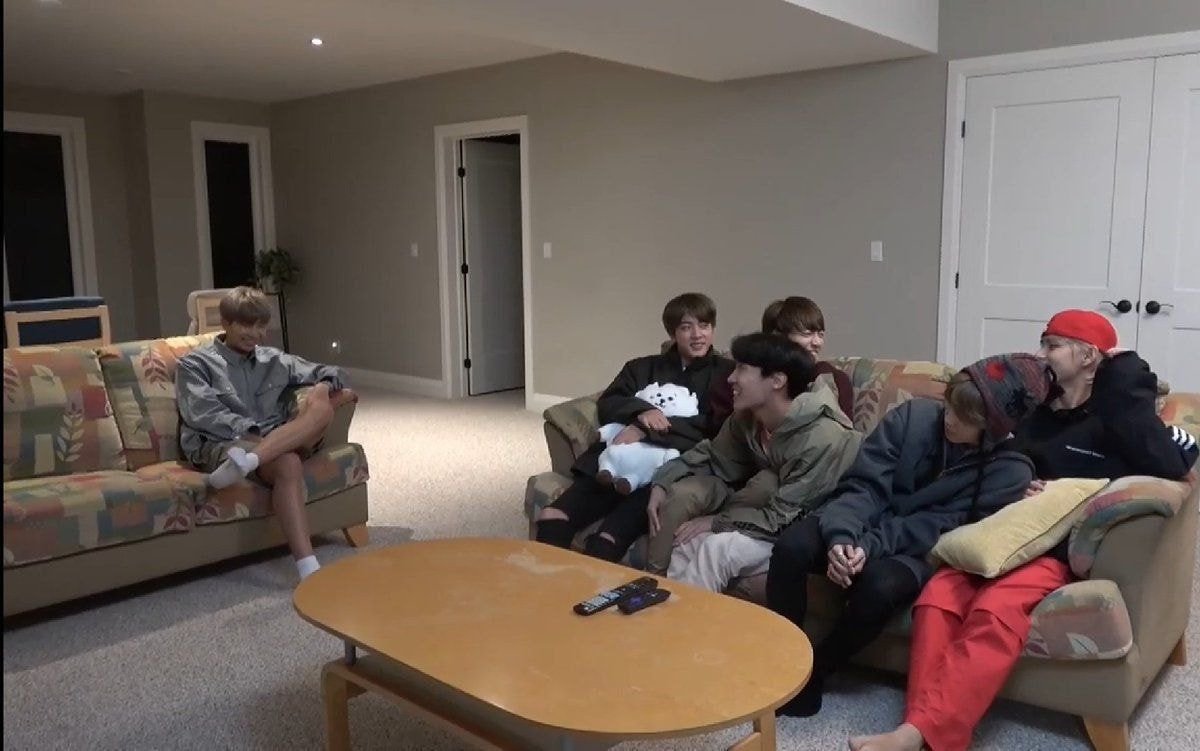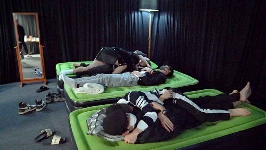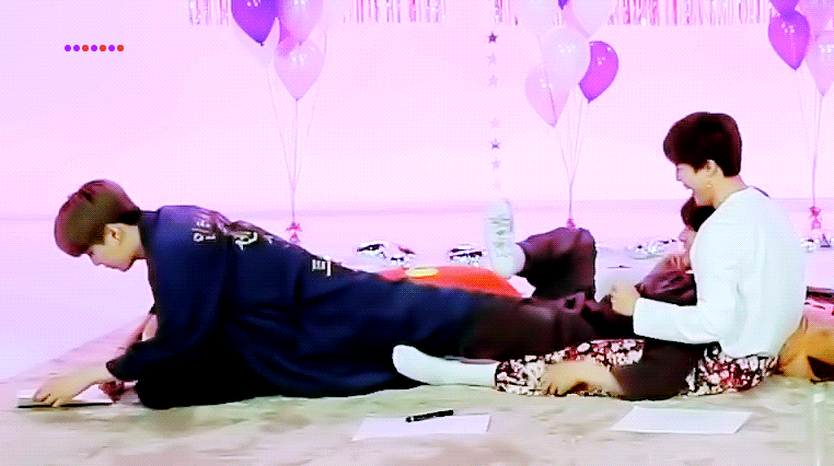 상체를기댈 쿠션으로 멤버의다리를 쓰는 멤버와 그걸 신경쓰지 않는 당사자