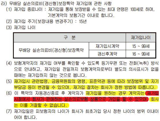 (아래 첨부사진의 라조 5항에 따라 재가입 시 보장 범위/자기 부담금이 변경될 수 있고, 재가입 절차는 회사가 정 한방 법에 따른다고 돼있지요)