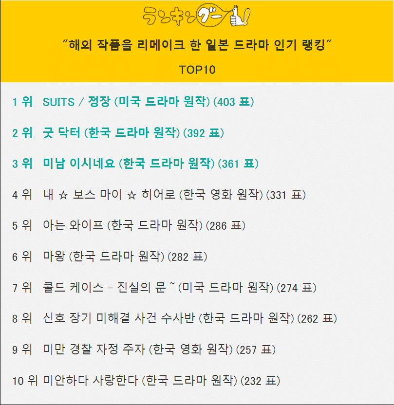 海外作品をリメイクした日本ドラマ人気ランキングベスト10