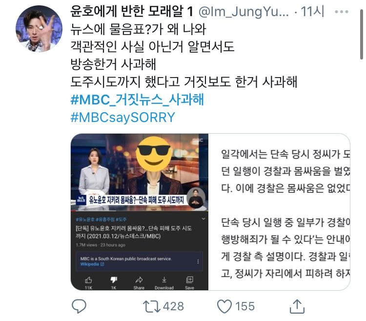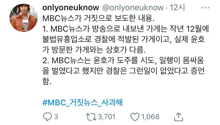 눌러보면 정윤호 불법유흥업소 보도 관련 실트임