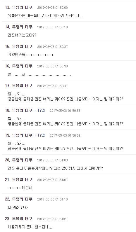 팬들이 하도 배신감에 부들부들 떨고 공카글 내용이 저렇다고 하니까