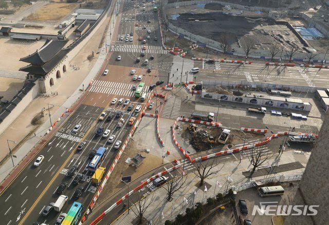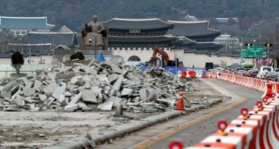 광화문 광장을 덮었던 아스팔트 도로, 그 밑의 콘크리트 도로...