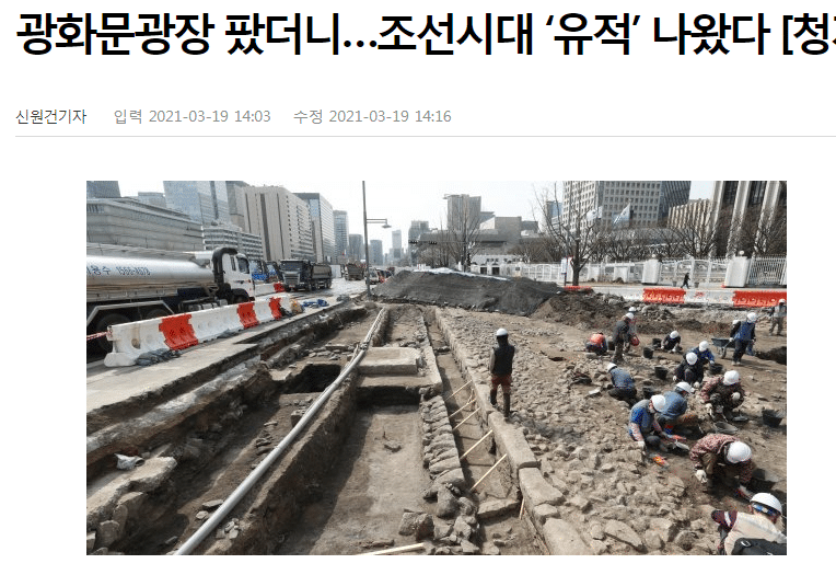 | [단독] 광화문광장 확장 공사장서 ‘조선시대 수로水路’ (0) | 2021.03.19 |
