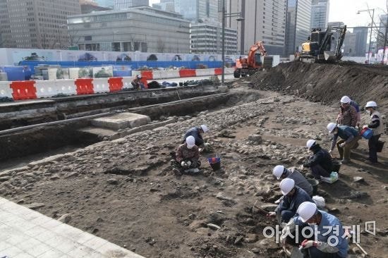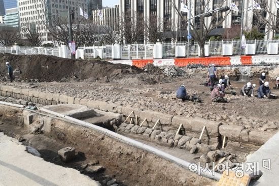 조선 시대것으로 추정되는 수로와 온갖 문화재들이 수없이 쏟아져 나오는 중임