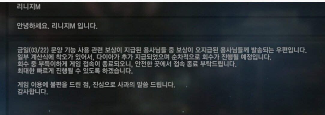 환불 대신 게임 내 재화인 다이아로 보상하는 정신나간 짓을 시도함.