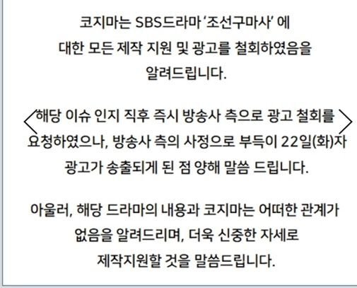 | [단독]'조선구마사' 광고 속속 빠진다…LG생건 "편성 취소"-코지마 "검토" (0) | 2021.03.24 |
