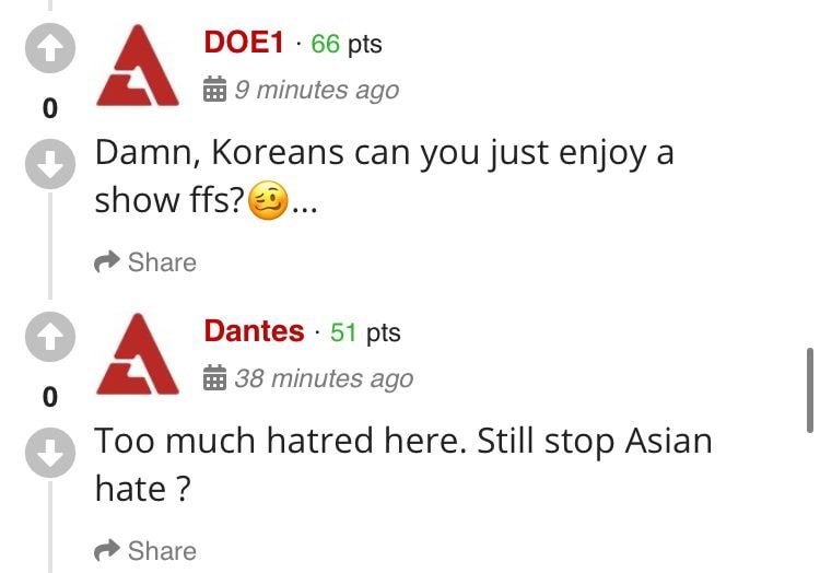 - 너희는 더 성숙한 모습을 보여줘야지 중국이랑 똑같아지는거 같아.. 꼴불견임..ㅠㅠ