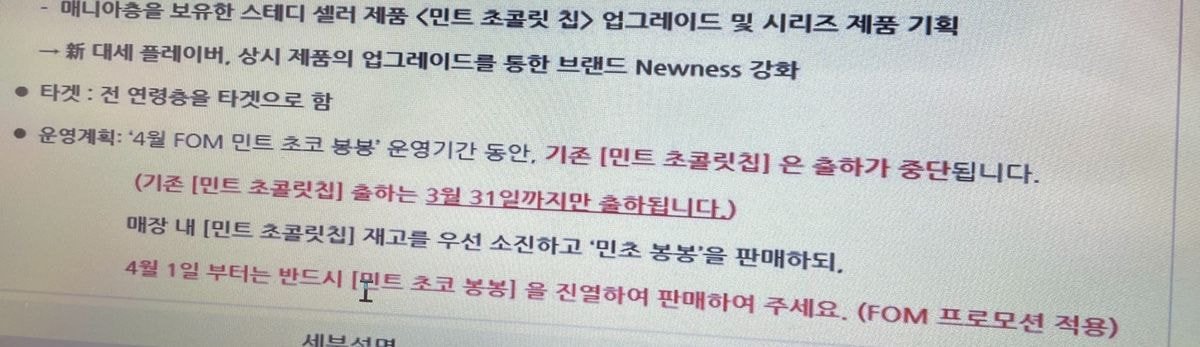 기존 민트초코는 민초봉봉 나올동안 출하 중단임