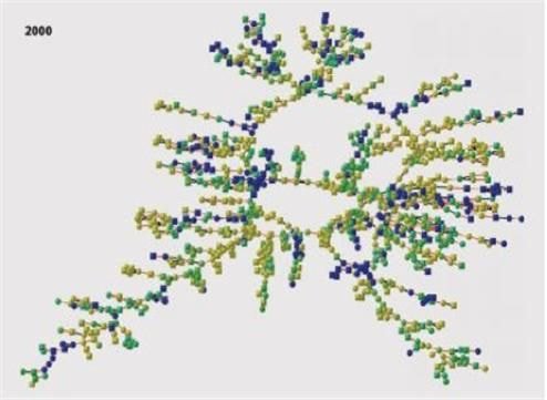 그가 인용한 크리스타키스와 파울러의 연구결과를 보자. 그들은 한 지역 공동체의 소셜 네트워크를 그림으로 표현했다. 그림에서 연두색은 행복한 사람, 파란색은 행복하지 않은 사람이다. 주목할 만한 사실은 비슷한 색끼리 뭉쳐있다는 것이다. 즉, 행복한 사람 주변에는 행복한 사람이 많고 행복하지 않은 사람 주변에는 행복하지 않은 사람이 많다는 것을 보여준다. 또한 일부 파란 색은 네트워크의 끝에 존재하며 이는 주변 사람과의 관계 단절을 의미한다. 행복해지려면 일부러 노력해서라도 지금 행복한 사람들 곁으로 다가가기 위해 노력해야한다.